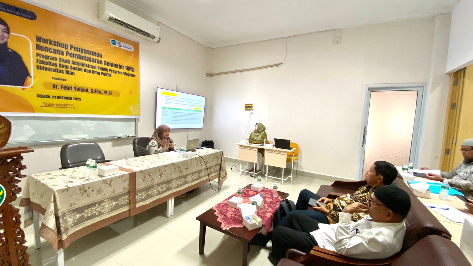 Pekanbaru, 21 Oktober 2025 — Program Studi Administrasi Publik Program Magister (S2) Fakultas Ilmu Sosial dan Ilmu Politik Universitas Riau (FISIP UNRI) menyelenggarakan Workshop Penyusunan Rencana Pembelajaran Semester (RPS) di Ruang PDAP, Pascasarjana FISIP UNRI. Kegiatan ini bertujuan memperkuat mutu pembelajaran serta menyelaraskan kurikulum dengan capaian pembelajaran lulusan (CPL), sejalan dengan dinamika dan tuntutan dunia usaha, dunia industri, dan dunia kerja (DUDIKA).